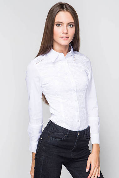 Боди это не просто удобное сочетание трусиков и блузки, это красиво и элегантно! Данная модель выполнена из хлопковой ткани, имеет облегающий крой, с вытачками на груди. Передняя часть боди украшена гипюровыми вставками.