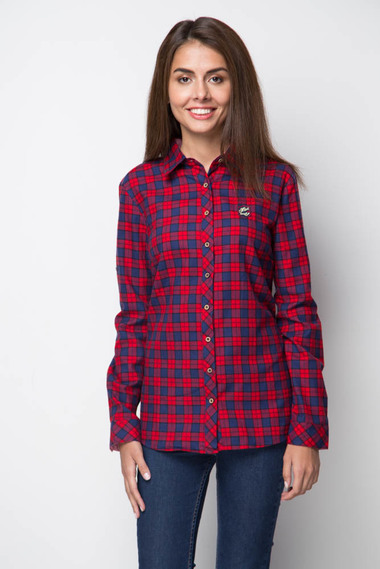 ОписаниеПрактичная блуза вкрасно-синюю клетку. Изготовлена из стопроцентного хлопка, имеет классичский покрой, манжеты и рубашечный воротник.