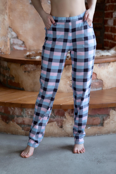 Фото товара 20885, домашние хлопковые брюки в клетку