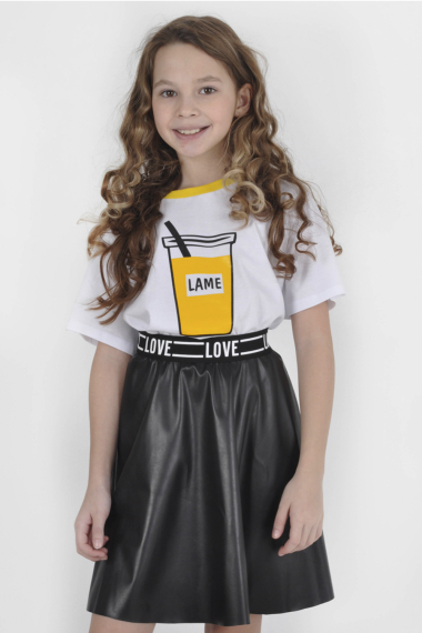 Особенности изделия: Стильная юбка средней длины из экокожи на широкой резинке. Крой полусолнце.